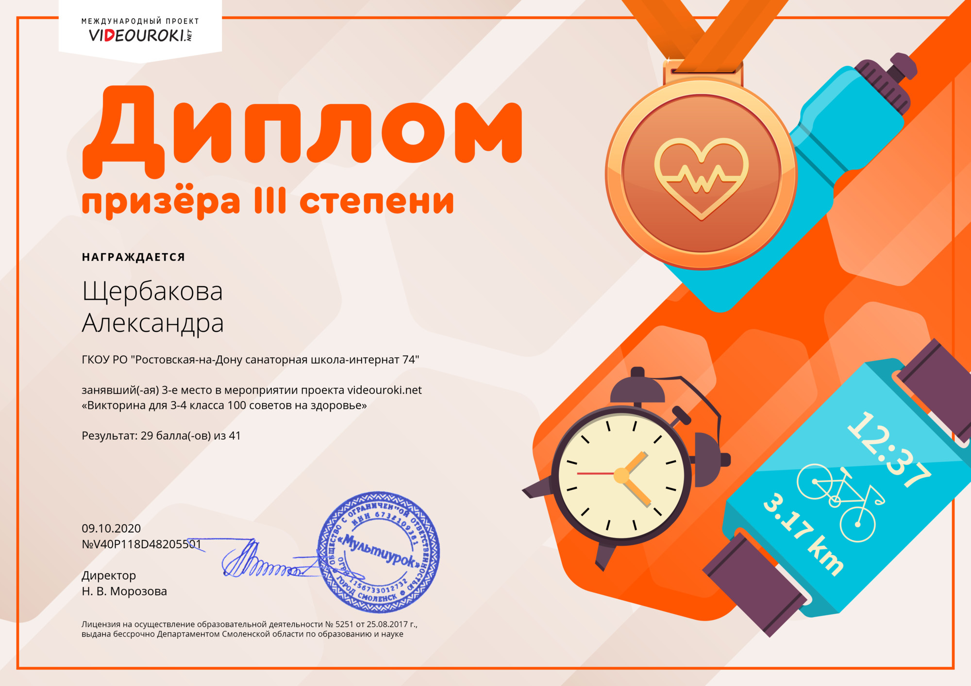 Щербакова Александра. Диплом 3 степени