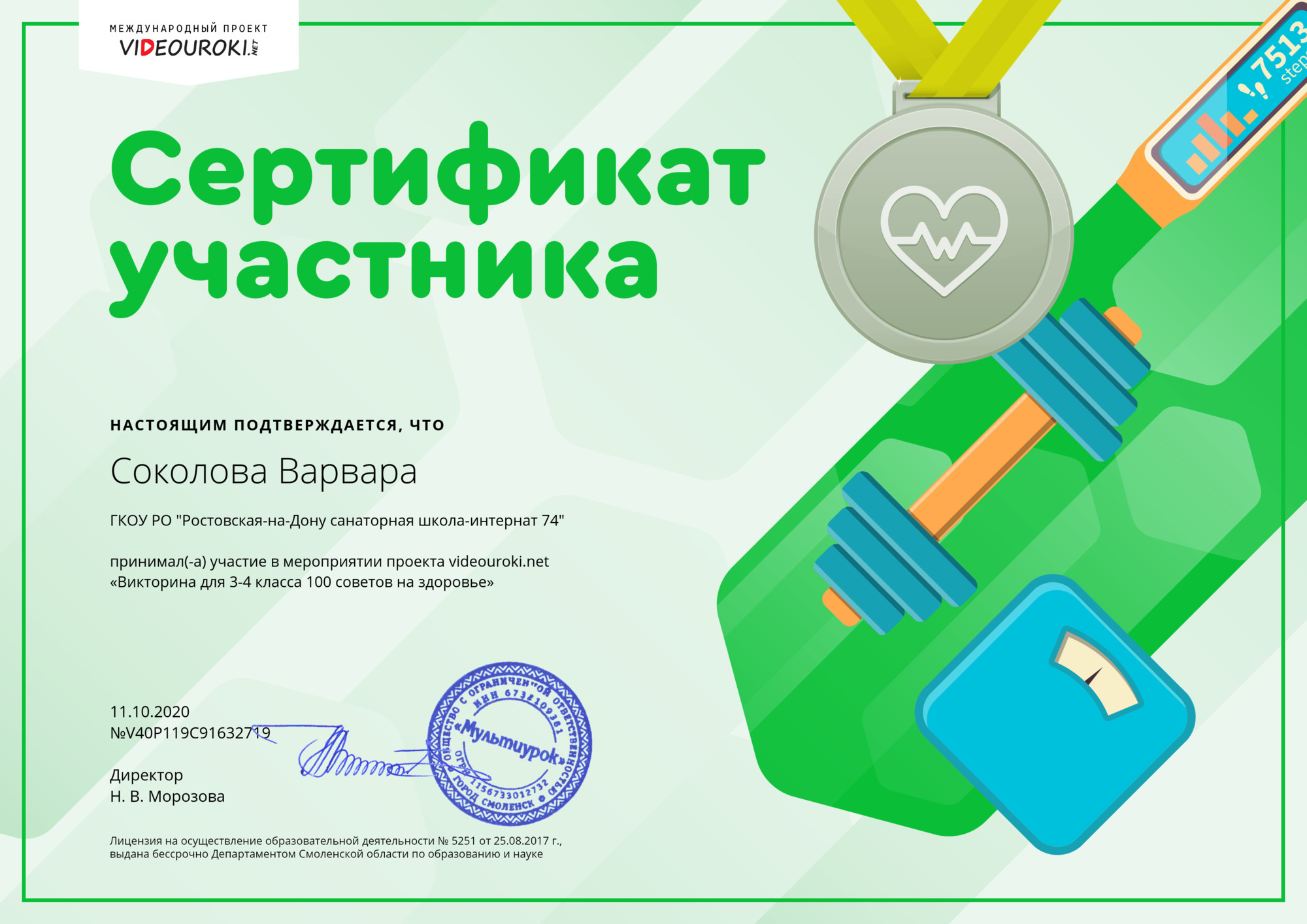 » Соколова Варвара. Сертификат